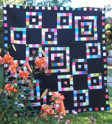The Black one is all Scaps, and out of my head, sort of made it up as I went along. I went through all my bits and anything that was 2 1/2 inches or bigger went into it. I had so many I did the back as well. To be honest I am not sure whether I like the back or the front better. The back is the one with more black. It was a bit of fun (not) to get it all straight on my frame so that I did not miss any of the colour, but it all worked out fine in the end.